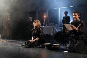 Ο σκηνοθέτης επιλέγει, όπως, και στην πρώτη παράσταση, μόνο γυναίκες για να ερμηνεύσουν τους ρόλους-μέλη της οικογένειας για να κάνει αισθητή τόσο την αδυναμία των ανδρών να φέρουν αντίρρηση στην Ασπασία όσο και να δώσει έμφαση στον εγκλεισμό και τον αποκλεισμό τους από το υπόλοιπο χωριό. Η ενδυματολόγος και σκηνογράφος Δανάη Πανά δημιουργεί ένα υπό κατεδάφιση αρχοντικό που εύκολα γίνεται μοναστήρι, διαμέρισμα καθώς η πλοκή εξελίσσεται. Οι χλαίνες και τα σακάκια υποδηλώνουν την αρσενική παρουσία με το μαύρο χρώμα να κυριαρχεί παντού, όπως η θλίψη αυτών των γυναικών. Οι φωτισμοί της Σεμίνας Παπαλεξανδροπούλου εντείνουν το σκοτάδι που υπάρχει όχι μόνο στη νύχτα αλλά στις ζωές των γυναικών της οικογένειας Φτενούδου. Η μουσική του Κωνσταντίνου Ευαγγελίδη τονίζει τη συναισθηματική φόρτιση ενώ ταυτόχρονα προσφέρει «ανάσες» στον θεατή από τη ζοφερή καθημερινότητα των ηρωΐδων.
