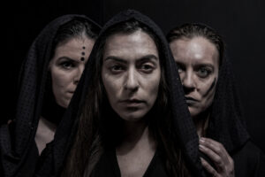 Η πρώτη ιστορία που βλέπουμε να ξετυλίγεται μπροστά στα μάτια μας, είναι εκείνη της Μήδειας. Στη σκηνή ερμηνεύουν και οι τρεις πρωταγωνίστριες με δυναμικές παρουσίες, μας μεταφέρουν στη δραματική πραγματικότητα της Μήδειας, μας παρασύρουν και μας συγκινούν. Η Στυλιανή Κλείδωνα υποδύεται τη Μήδεια και ξεχωρίζει με την επιβλητική της παρουσία.