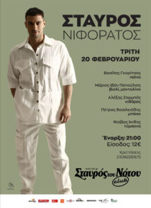 Ο Σταύρος Νιφοράτος στο Σταυρό του Νότου Club την Tρίτη 20 Φεβρουαρίου