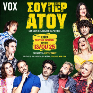 ΣΟΥΠΕΡ ΑΤΟΥ- το πιο δυνατό χαρτί στη νυχτερινή διασκέδαση της Αθήνας, επιστρέφει στο VOX για μια extra τελευταία παράσταση γιατί εσείς το ζητήσατε! Δευτέρα 13 Ιανουαρίου στις 21:00!