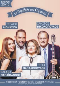 Με τον μεγαλύτερο Έλληνα λαϊκό συνθέτη και δεξιοτέχνη του μπουζουκιού Χρήστο Νικολόπουλο, τη σπουδαία και διαχρονική ερμηνεύτρια Πίτσα Παπαδοπούλου, τον πολύ αγαπημένο μας Στέλιο Διονυσίου και την ανερχόμενη ταλαντούχα Ελεάνα Παπαϊωάννου!